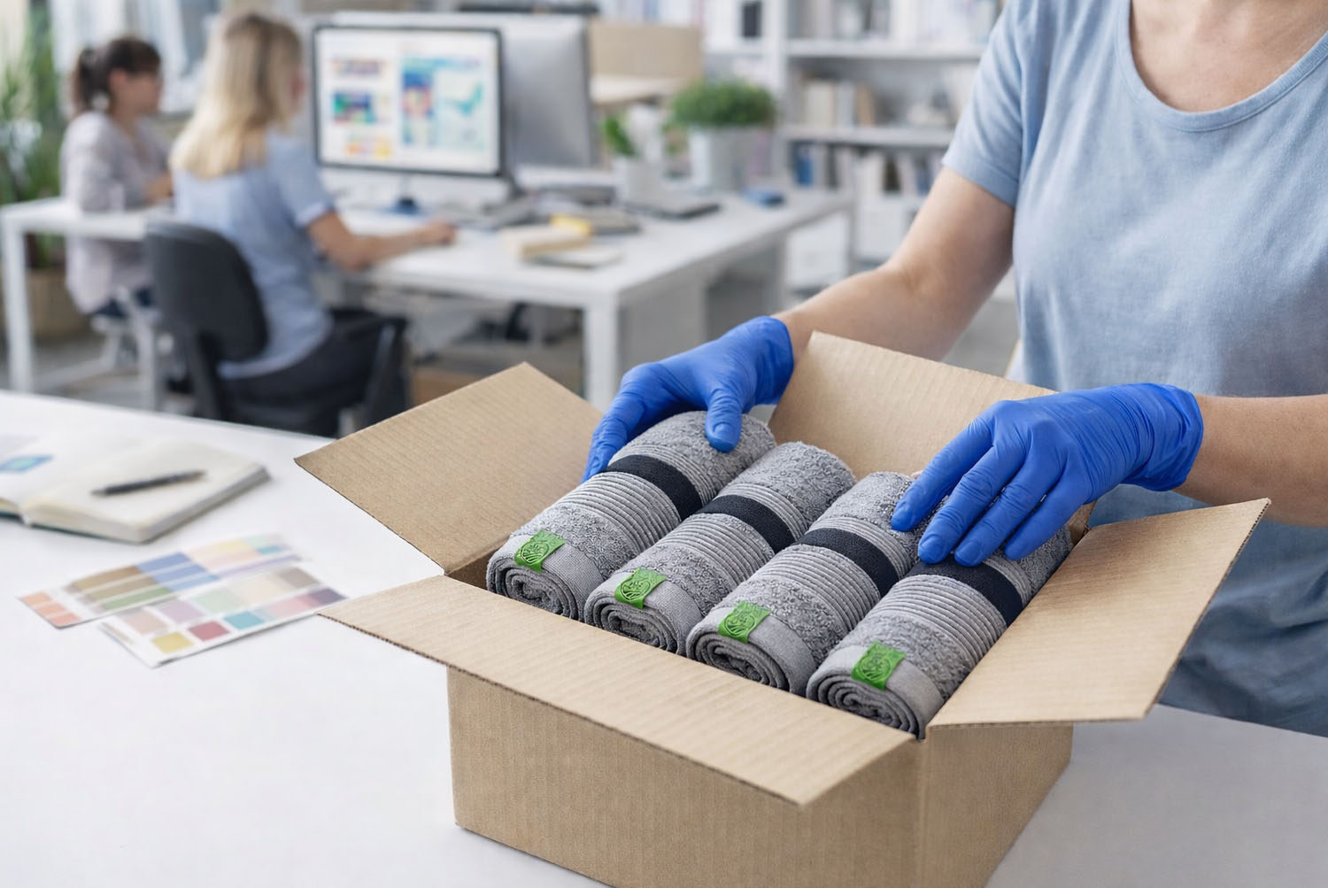 · Paruošime dėžutes, maišelius, lipdukus, atvirlaiškius, informacines ar sveikinimo korteles, juosteles, siuvinėjimą, kaspinus su logotipu ir kitus rekvizitus.